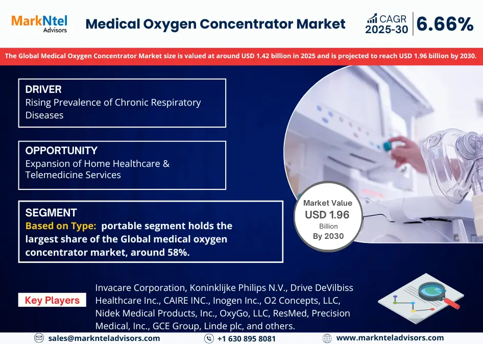 MarkNtel Advisors, a leading market research and consulting firm, has announced the release of its latest study titled “ Global Medical Oxygen Concentrator Market Analysis, 2025-2030.”
