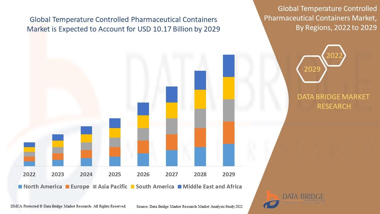 Data Bridge Market Research analyses that the temperature controlled pharmaceutical containers market was valued at USD 4.32 billion in 2021 and is expected to reach USD 10.17 billion by 2029, registering a CAGR of 11.30 % during the forecast period of 2022 to 2029.