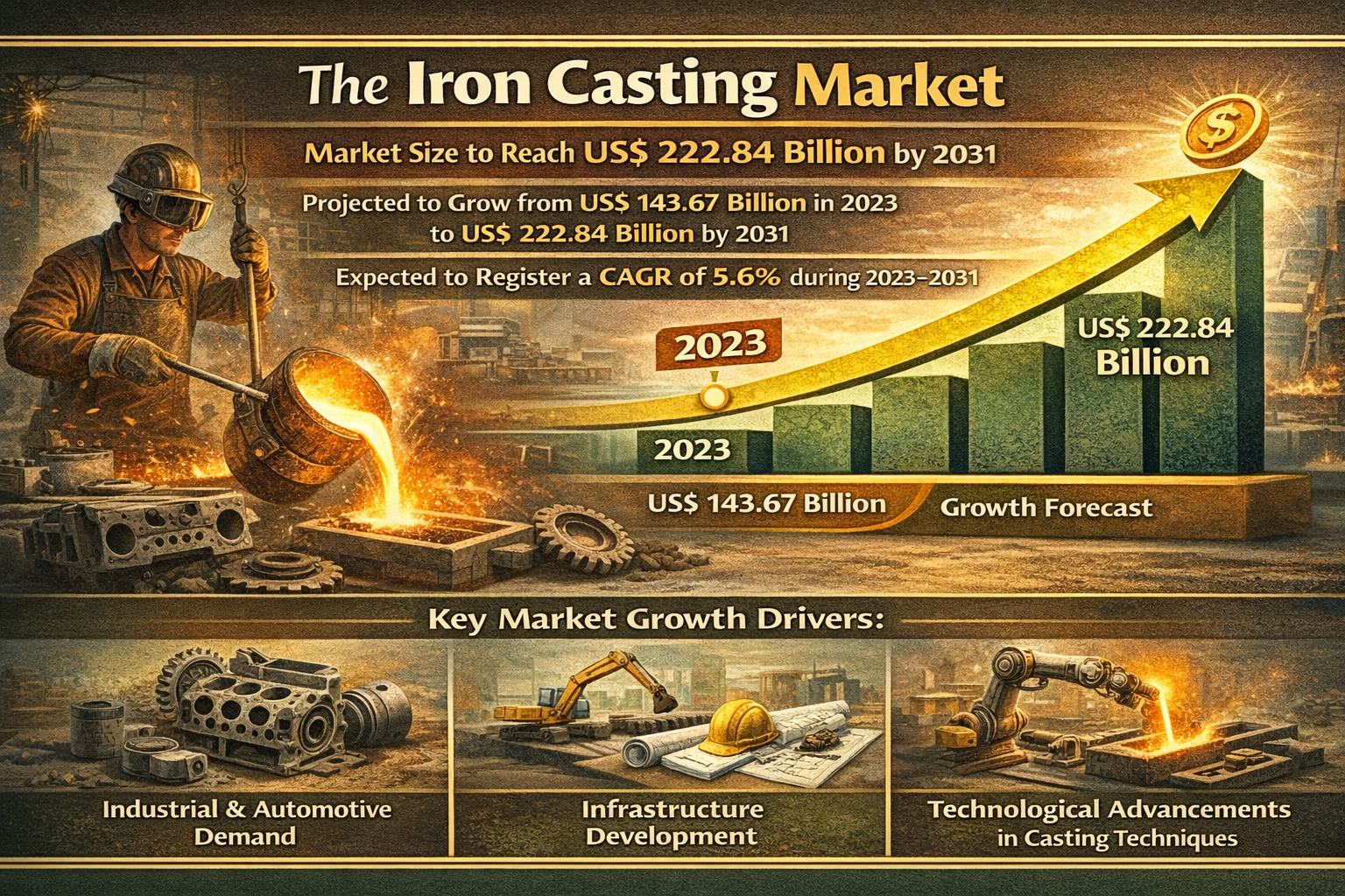 Iron Casting Market Size to Reach US$ 222.84 Billion by 2031 Amid 5.6% CAGR Growth