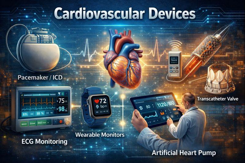 Cardiovascular devices play a critical role in diagnosing, monitoring, and treating heart related conditions such as arrhythmias, coronary artery disease, stroke, and heart failure. Continuous technological innovation, increasing disease prevalence, and growing awareness of early diagnosis are driving demand for advanced cardiovascular devices across hospitals and cardiac care centers worldwide.