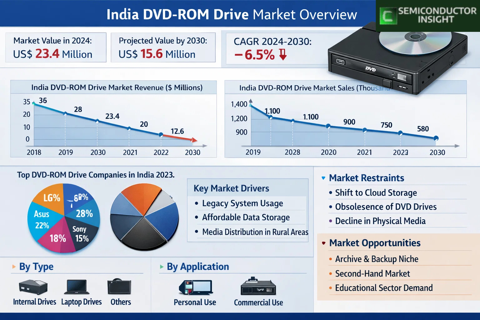 Will India DVD-ROM Drive Market Projected to Decline to USD 15.6 Million by 2034 ..?