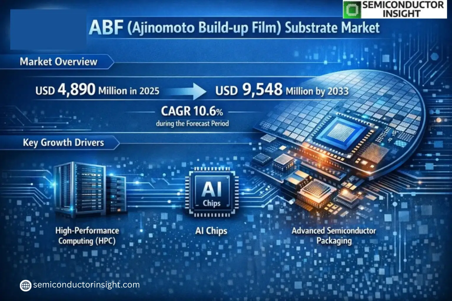 The global ABF (Ajinomoto Build-up Film) Substrate Market was valued at USD 4,890 million in 2026 and is projected to reach USD 9,548 million by 2034, registering a CAGR of 10.6% during the forecast period 2026–2034. Market growth is trending upward, supported by rising demand for AI processors, high-performance computing platforms, and advanced semiconductor packaging.