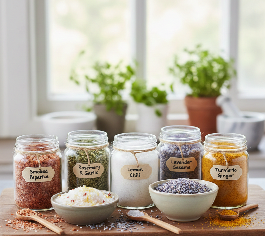A: Popular options include garlic, smoked, citrus, herb blends, and exotic spice‑infused salts.
