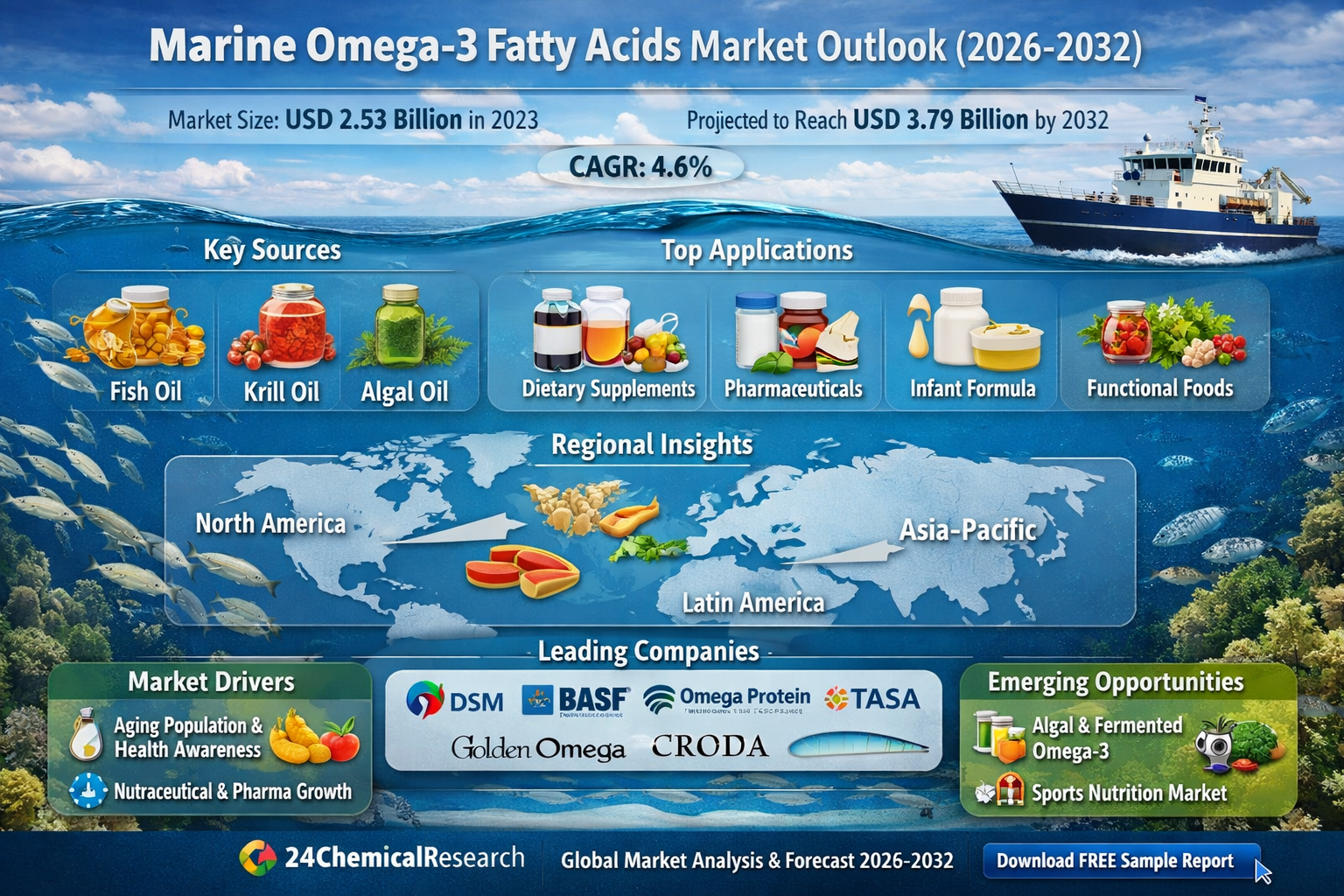 This comprehensive report provides detailed analysis of the global marine omega-3 fatty acids market from 2024-2032, featuring:
