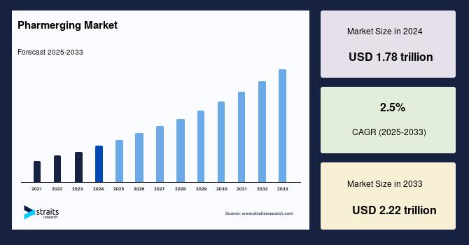 According to StraitsResearch, the global pharmerging market size is valued at USD 1.78 trillion in 2024 and is estimated to reach USD 2.22 trillion by 2033, growing at a CAGR of 2.5% during 2025-2033.