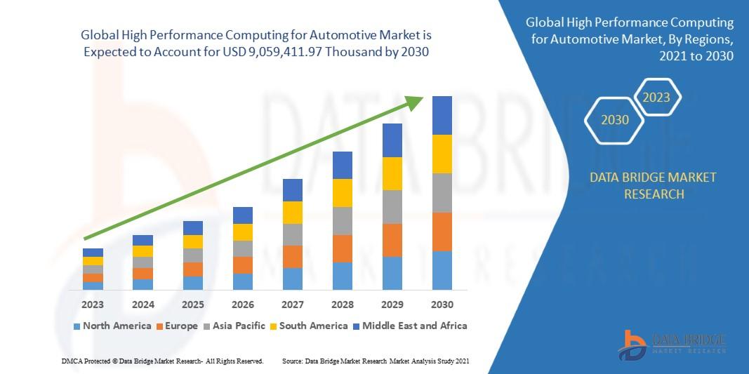 Data Bridge Market Research analyses that the global high performance computing for automotive market is expected to reach a value of USD 9,059,411.97 thousand by 2030, at a CAGR of 12.1% during the forecast period