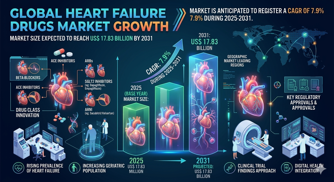 The global heart failure drugs market is witnessing sustained and significant growth, driven by an escalating cardiovascular disease burden, expanding pharmaceutical pipelines, and increasing access to advanced cardiac care worldwide. According to The Insight Partners, the heart failure drugs market was valued at US$ 10.47 Billion in 2024 and is projected to reach US$ 17.83 Billion by 2031, registering a steady CAGR of 7.9% over the 2025–2031 forecast period.