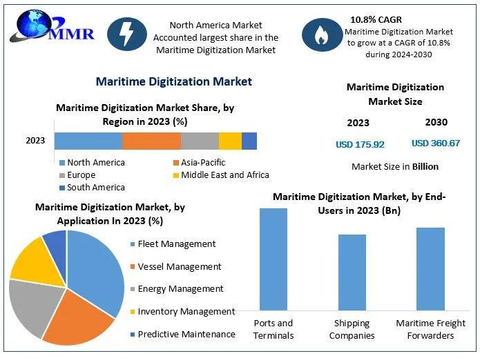Anticipated Growth in Revenue: The Maritime Digitization Market Size was valued at USD 175.92 Bn in 2023 and expected to reach USD 360.67 Bn by 2030, at a CAGR of 10.8 % from forecast 2024 to 2030.