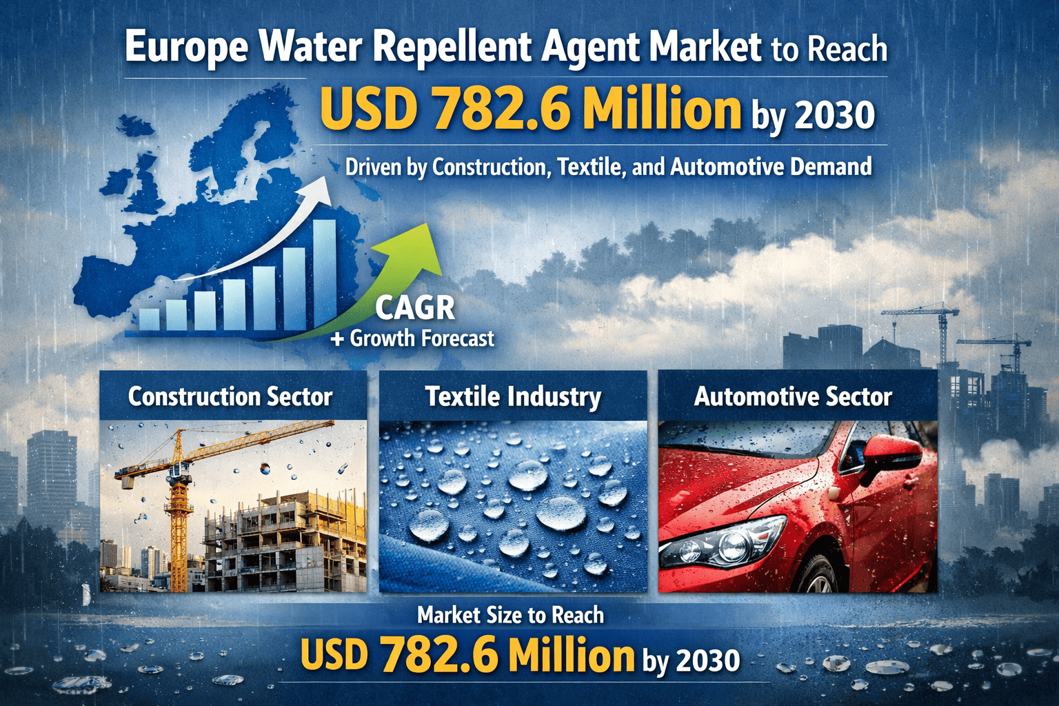 Europe Water Repellent Agent Market to Reach USD 782.6 Million by 2030 Driven by Construction, Textile, and Automotive Demand