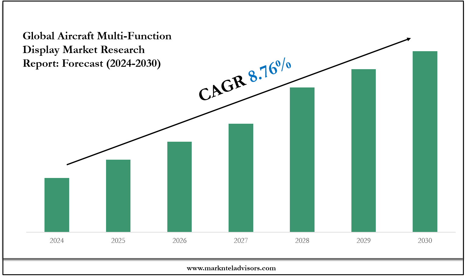The Global Aircraft Multi-Function Display Market size is estimated to grow at a CAGR of around 8.76% during the forecast period, i.e., 2024–30.