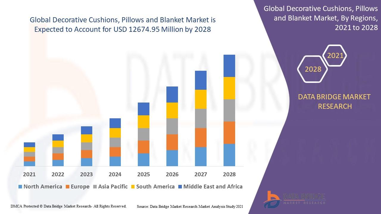 The decorative cushions, pillows and blanket market is expected to be growing at a growth rate of 11.00% in the forecast period of 2021 to 2028.In the leading Decorative Cushions, Pillows and Blanket Market Market report, industry trends have been described on the macro level, which makes it achievable to map market landscape and probable future issues. The report provides analysis and estimation of general market drivers in the form of consumer demand, government policy, and demand, which are connected with consumer buying patterns and thereby market growth and development. This market research report encompasses a thorough analysis of the market and abundant related factors that range from market drivers, market restraints, market segmentation, opportunities, challenges, and market revenues to competitive analysis. Decorative Cushions, Pillows and Blanket Market Market analysis report is also useful when launching a new product in the market or spreading out the business regionally or globally.