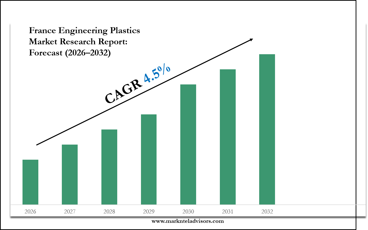 The France Engineering Plastics Market is estimated to grow at a CAGR of around 4.5% during the forecast period, i.e., 2026-32.