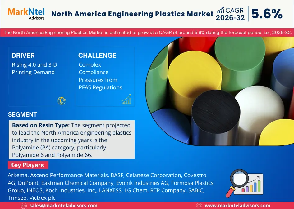 According to MarkNtel Advisors study The future of North America Engineering Plastics Market is estimated to grow at a CAGR of around 5.6% during the forecast period, i.e., 2026-32.