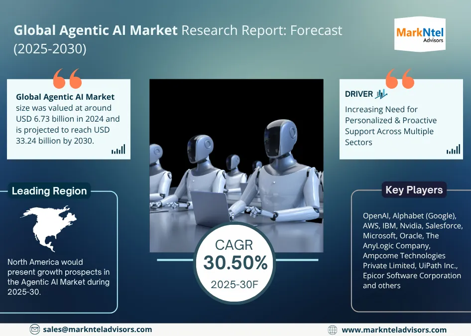 MarkNtel Advisors, a leading market research and consulting firm, has announced the release of its latest study titled “Agentic AI Market Analysis, 2025–2030.”
