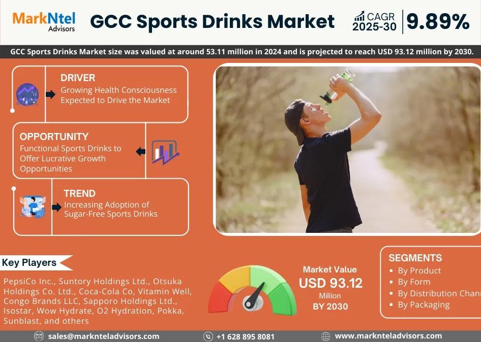 GCC Sports Drinks Industry Outlook 2030, 9.89% CAGR, USD 93.12 Million ValueMarkNtel Advisors, a leading market research and consulting firm, has announced the release of its latest study titled GCC Sports Drinks Market Research Report: Forecast (2025-2030