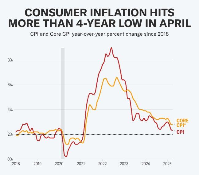 Consumer inflation hits a 4 YEAR LOW! New CPI data shows the lowest annual increase since February 2021. Will the media cover this or they’re still crying about Trump’s tarrif talks?