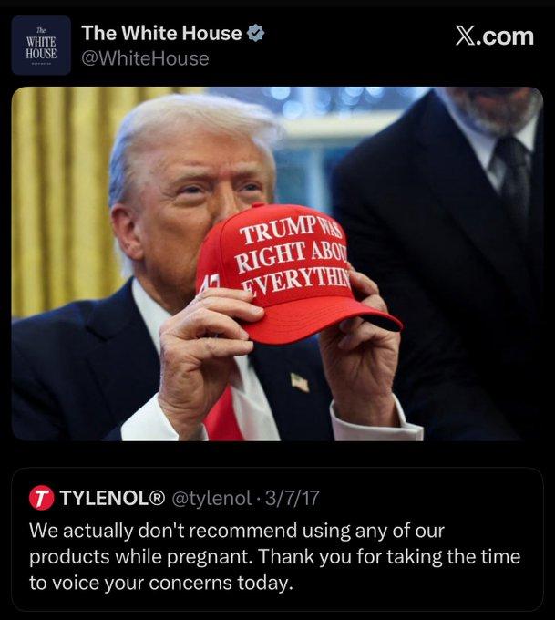 BREAKING: White House takes huge victory lap after 2017 statement from Tylenol goes viral of them warning pregnant women NOT to take their pills.