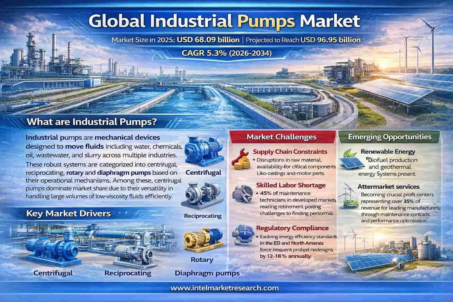 Global Industrial Pumps Market Projected to Reach USD 96.95 Billion by 2034, Growing at a 5.3% CAGR; Key Players and Trends Global Industrial Pumps market was valued at USD 68.09 billion in 2025 and is projected to reach USD 96.95 billion by 2034, growing at a steady CAGR of 5.3% during the forecast period (2026–2034). 📥 Download Sample Report: https://www.intelmarketresearch.com/download-free-sample/30117/industrial-pumps-market 🌐 Website: https://www.intelmarketresearch.com 📞 Asia-Pacific: +91 9169164321 🔗 LinkedIn: Follow Us