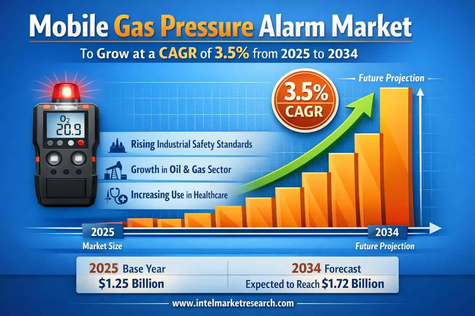 Mobile Gas Pressure Alarm Market to Grow at a CAGR of 3.5% from 2025 to 2034 – Key Players to Watch According to new market intelligence from Intel Market Research, the global Mobile Gas Pressure Alarm market reached USD 98 million in 2024 and is forecast to expand to USD 126 million by 2034, delivering steady growth at a 3.5% CAGR through the decade. 📥 Download FREE Sample Report: https://www.intelmarketresearch.com/download-free-sample/24831/mobile-gas-pressure-alarm-market 🌐 Website: https://www.intelmarketresearch.com 📞 Asia-Pacific: +91 9169164321 🔗 LinkedIn: Follow Us